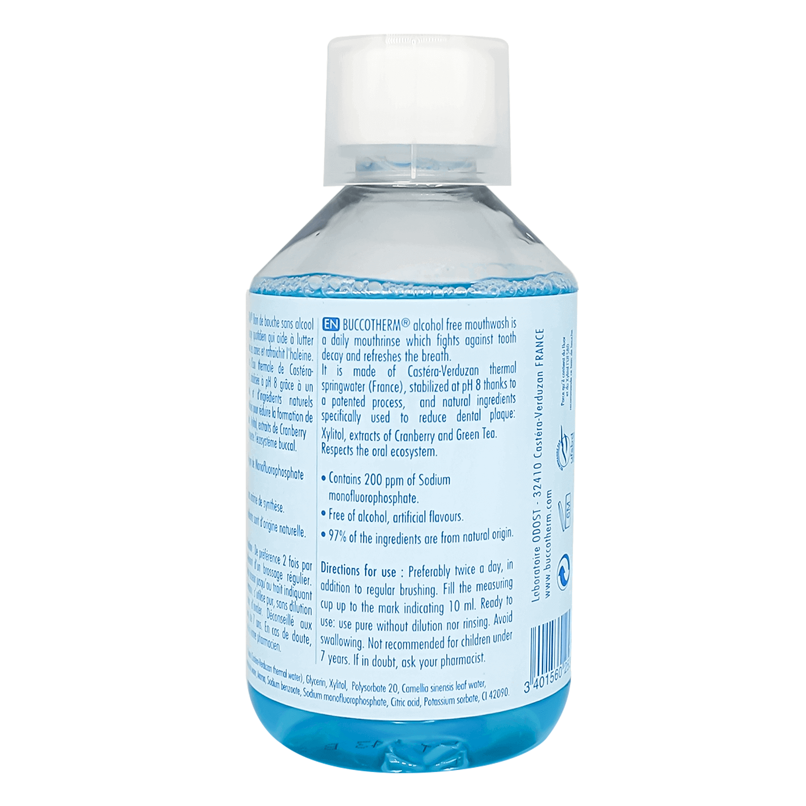 غسول بوكوثيرم الخالي من الكحول للاستخدام اليومي يساعد على الحماية من رائحة النفس الكريهة كما أنه يمنع ترسبات الأسنان والتسوس. مناسب للثة الحساسة ويمكن استخدامه يومياً.