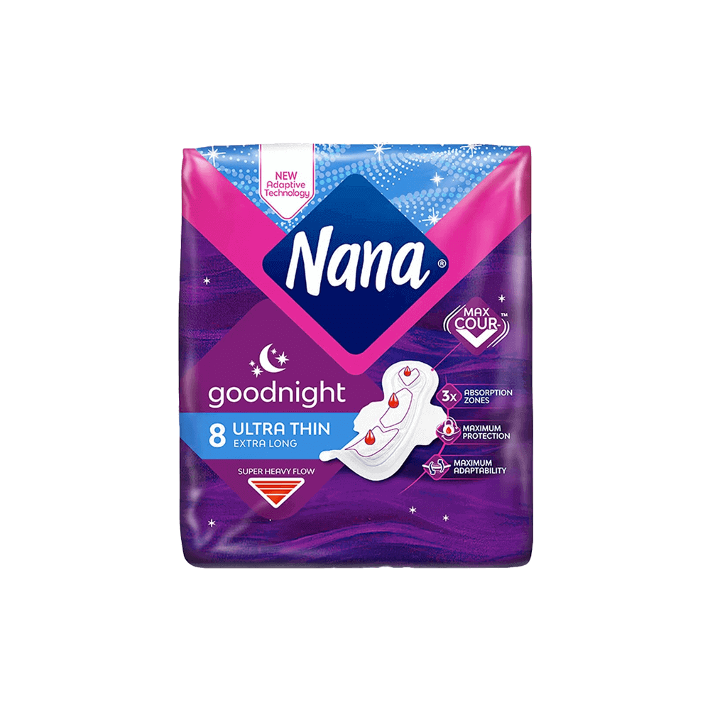 فوط صحية ليلية من نانا تمنحك أقصى درجات الأمان والراحة دون القلق من التسريب.