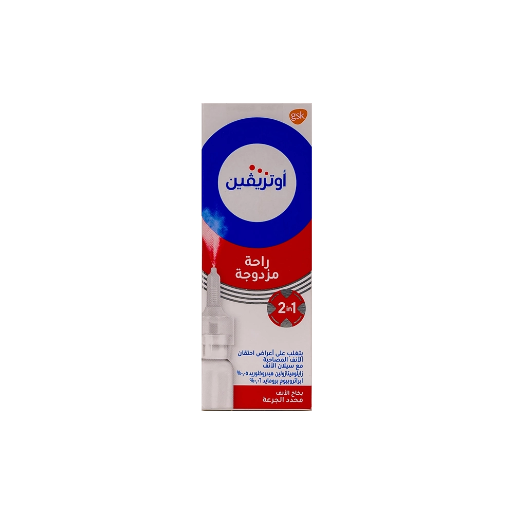 بخاخ أوتريفين لراحة مزدوجة هو منتج مركب ومزدوج المفعول يتكون من مكونين نشطين مختلفين: هيدروكلوريد الزايلوميتازولين وايبراتروبيوم بروميد.