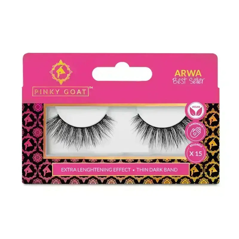 ما يميز رموش أروى من بينكي جوت هوأنها مصنوعة يدوياً من مواد نباتية كما أنها لا تحتوي على اي مواد مشتقة من الحيوانات.