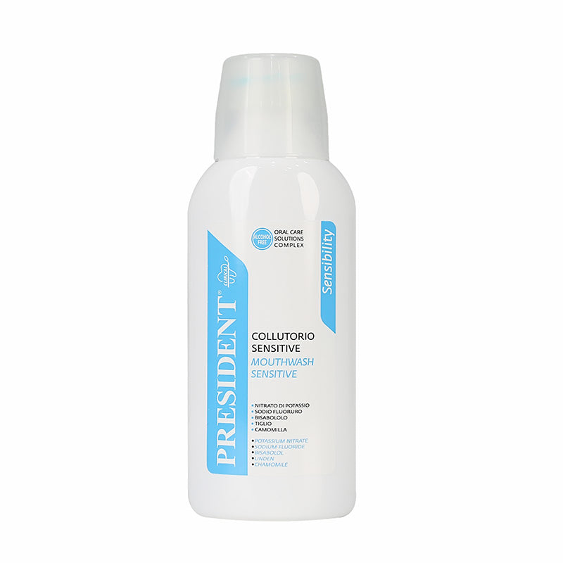 يحتوي غسول بريزدنت للأسنان الحساسة أيضاً على مستخلص الزيزفون والبابونج والبيسابولول، تساعد هذه المكونات على تهدئة وتلطيف الأنسجة الحساسة للفم والحنجرة.
