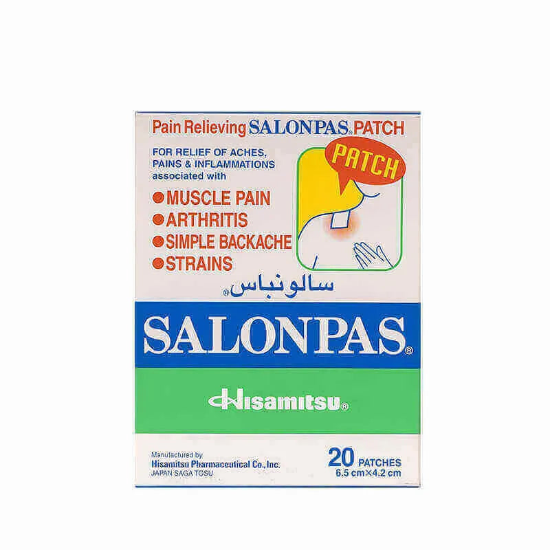 سالونباس لاصقات موضعية للاستعمال الخارجي لتخفيف الآلام ومنحك الشعور بالراحة. تحتوي كل عبوة على 20 قطعة بحجم 6.5 سم × 4.2 سم.