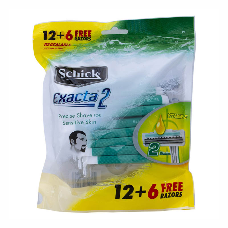 شيك اكزاكتا 2 شفرات للرجال خضراء للبشرة الحساسة عرض 12+6 قطعة
