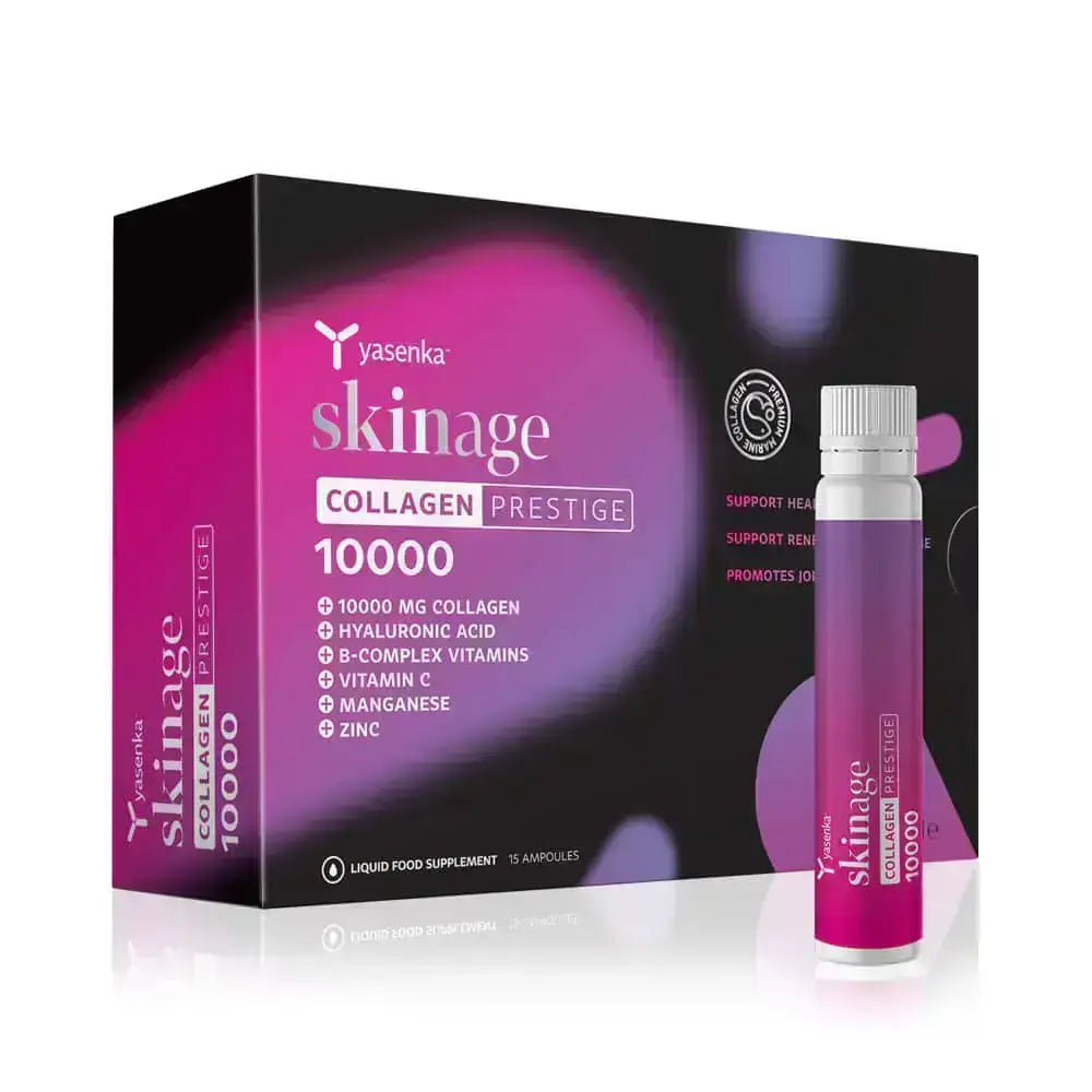 - تعد أمبولات الكولاجين من سكين ايج مكملاً يغذي البشرة من الداخل حيث يجمع بين فوائد الكولاجين وحمض الهيالورونيك وفيتامين ب.