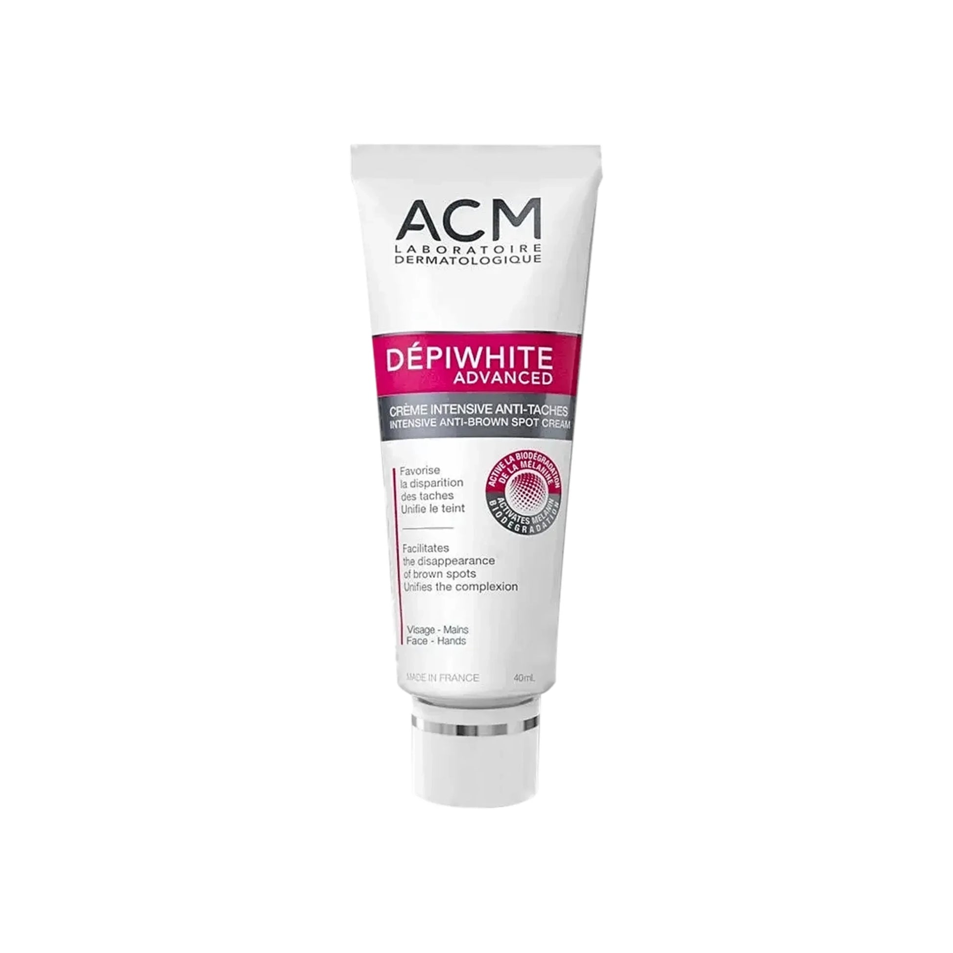 ACM depiwhite advanced cream is a depigmenting cream that contains a complex of patented active ingredients and 3 depigmenting active ingredients.