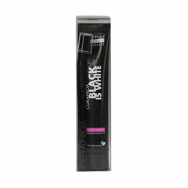 Curaprox Black Is White contains both a toothbrush and toothpaste to help maintain optimum oral hygiene.Both the brush and the toothpaste gently whiten the teeth and have a refreshing and cooling sensation while brushing.