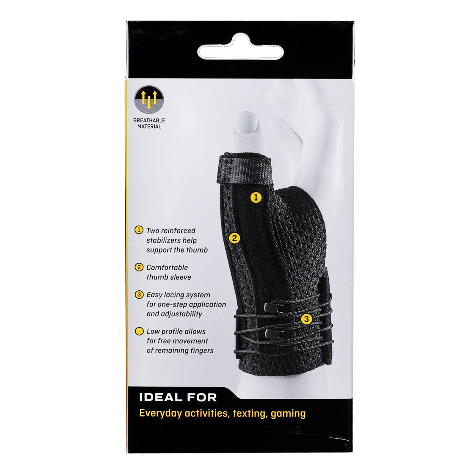 Futuro Thumb Deluxe Stabilizer helps to relieve thumb joint pain associated with texting and gaming.