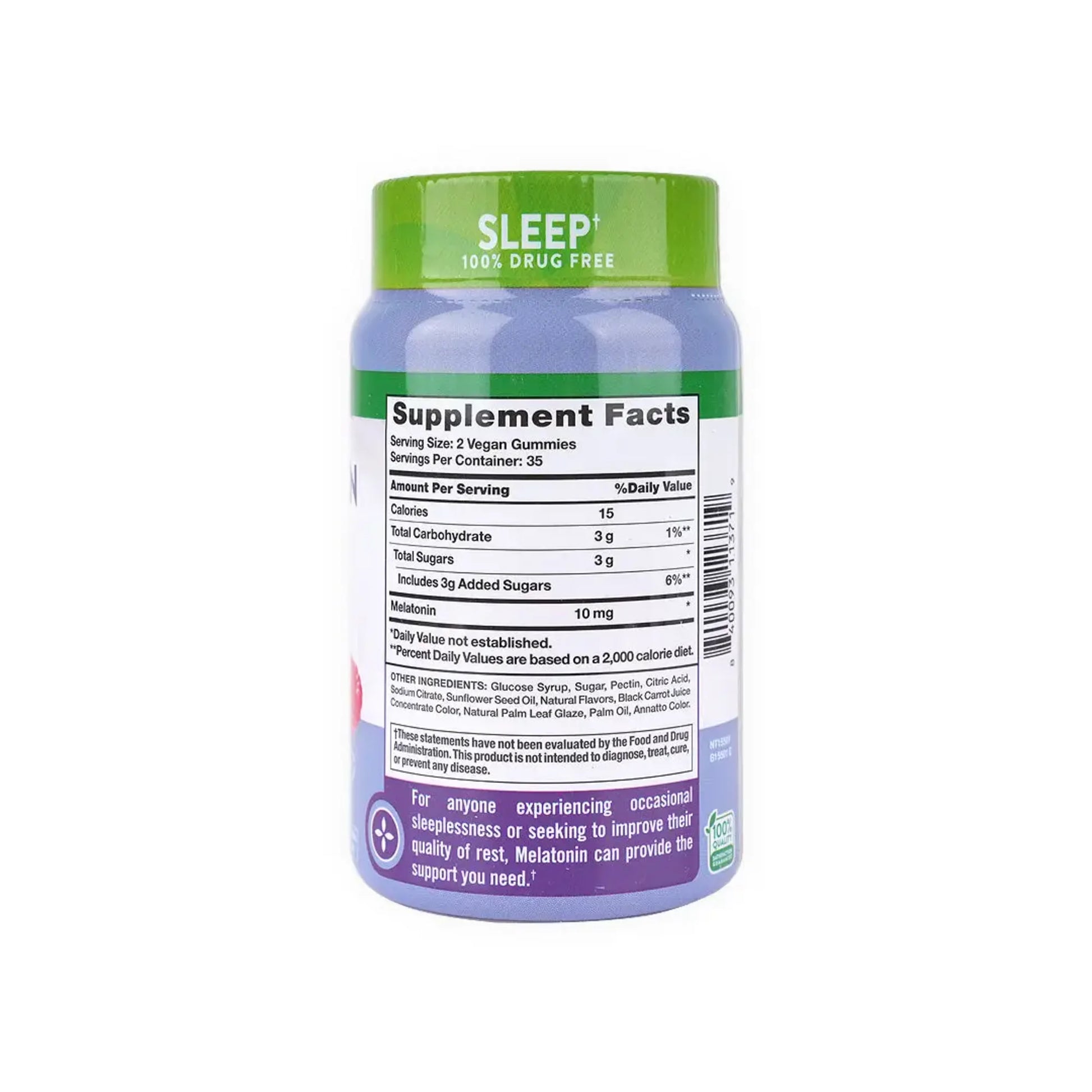 Nature's Truth Extra Strength Melatonin Gummies are vegan-friendly, Non-GMO, and gluten-free and do not contain any artificial flavors or sweeteners.