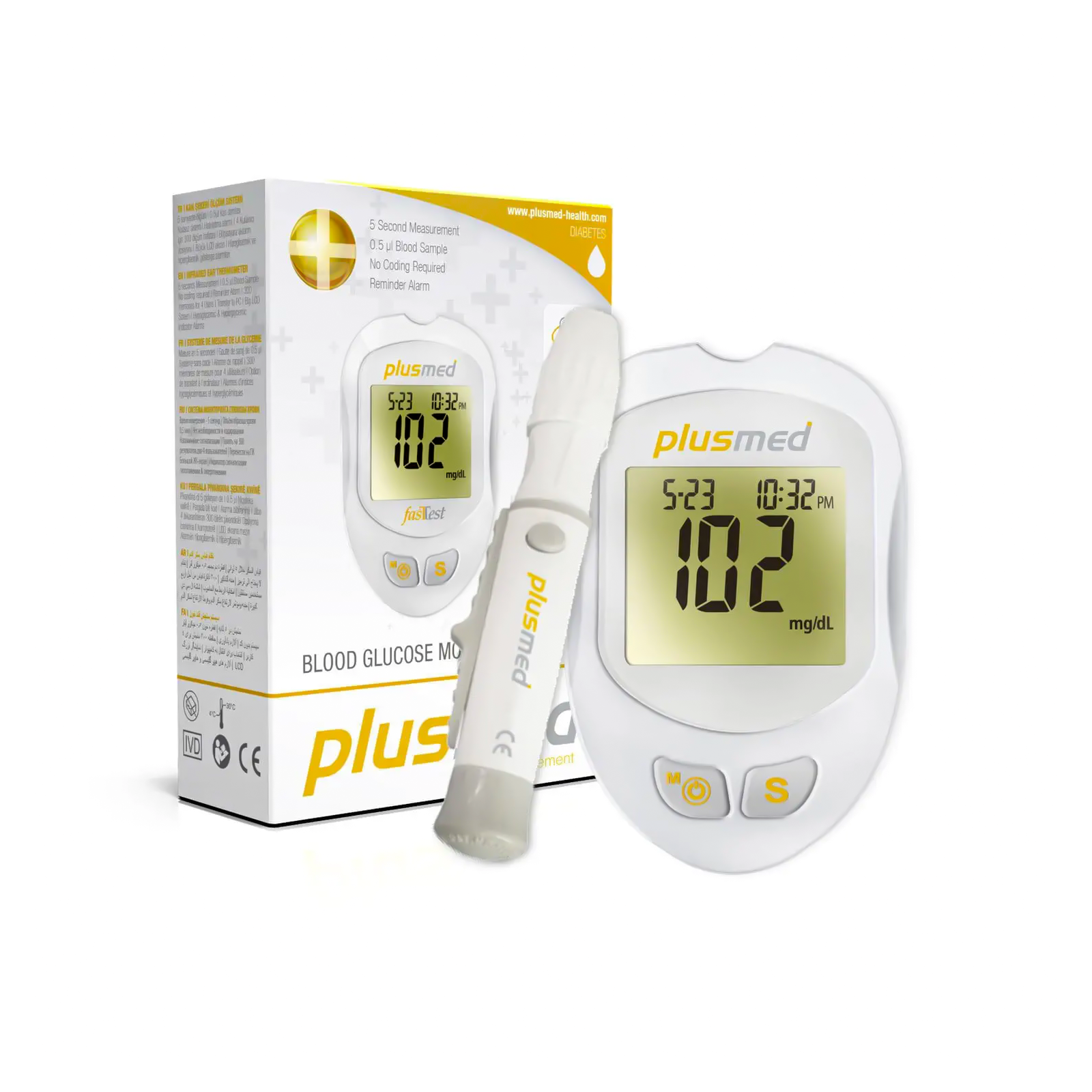 Plusmed Blood Glucose Monitor is a fast and accurate glucose monitor that helps measure and display the amount of sugar (glucose) in your blood and it is easy to use at home as it gives you results in only five seconds.It is very important to use a glucose monitor if you have diabetes to help you better manage your diabetes by tracking any fluctuations in your blood glucose level and choosing the best medication for you.