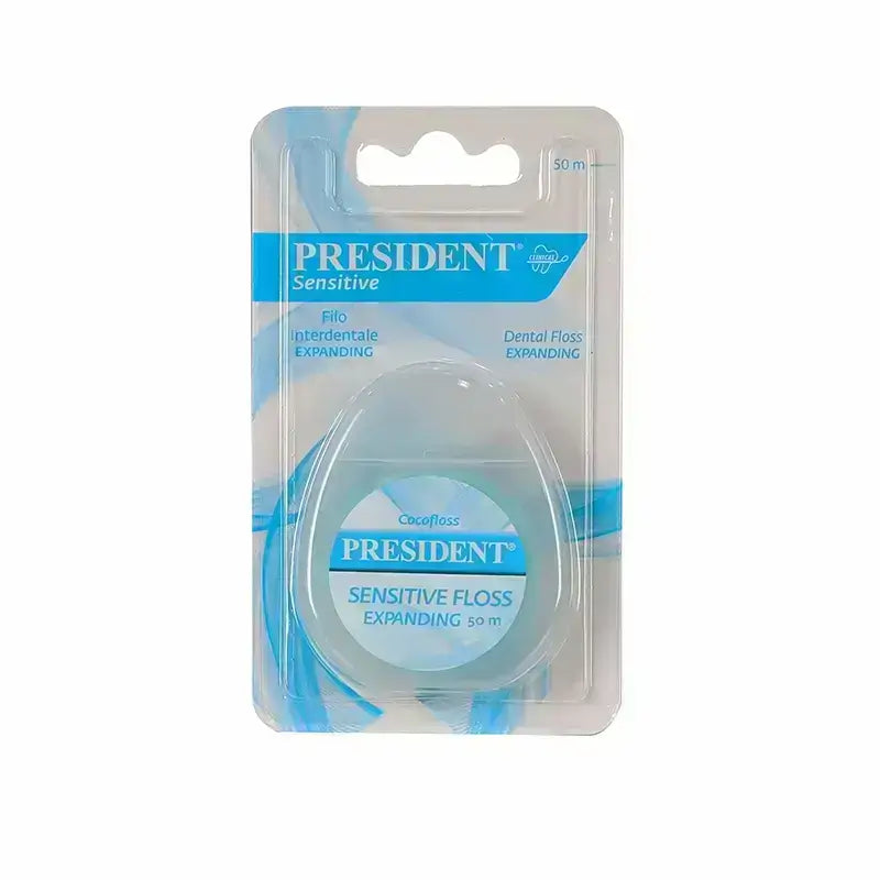 President Sensitive Expanding Dental Floss is used for sensitive gum to remove plaque.It slides between the teeth and cleanses hard-to-reach places that the brush cannot reach.