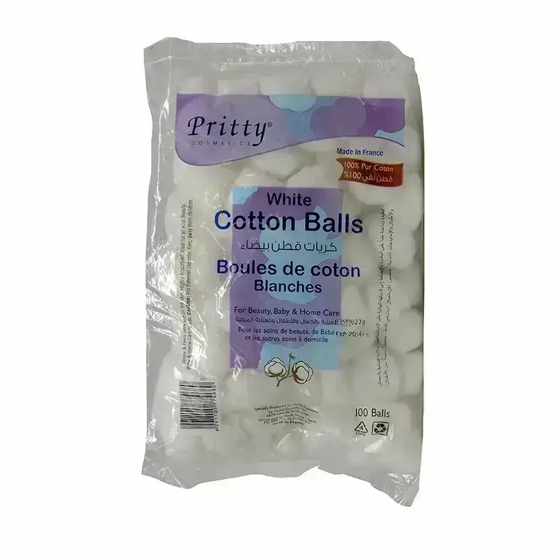 Pritty White Cotton Balls are versatile and essential for beauty, baby care, and personal care needs.The balls are made from 100% cotton and are soft and absorbent to be perfect for a range of applications.