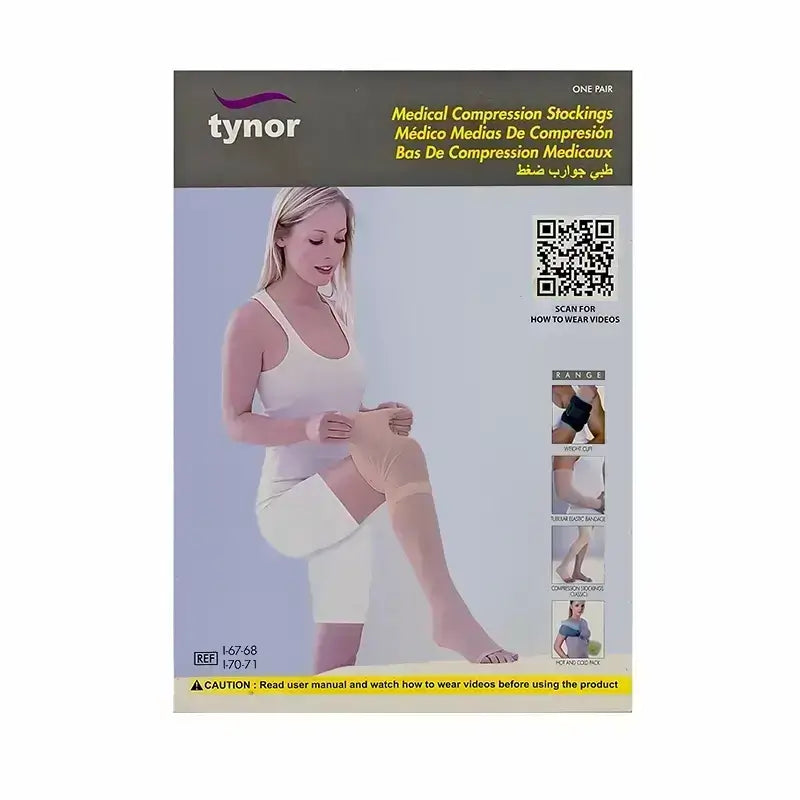 Tynor stockings are specially designed to limit the development of varicose veins and provide support up to the knee length.The stockings offer graduated compression, which is stronger at the ankle and decreases higher up the leg.