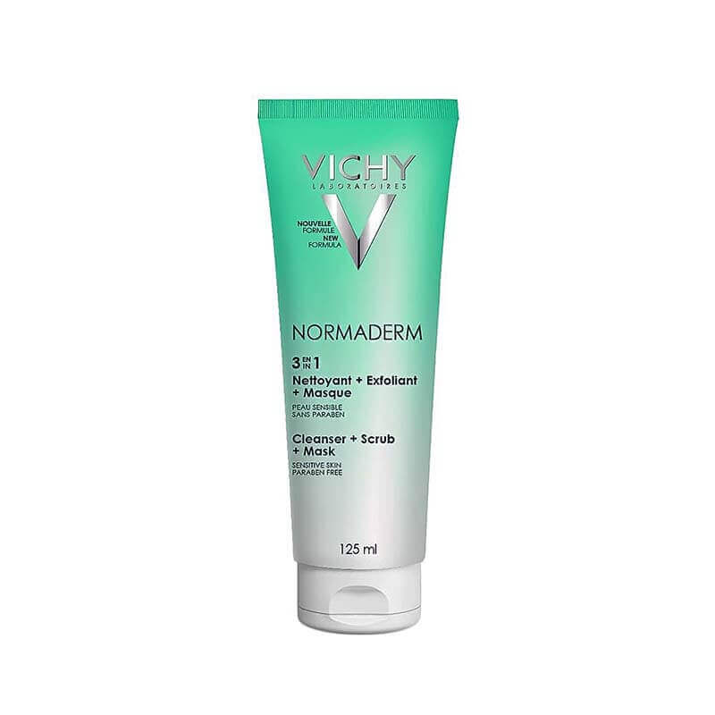 Acting as a cleanser, scrub and mask, Vichy Normaderm's 3-in-1 Cleansing + Scrub + Mask is a one-stop solution for oily and imperfection-prone skin. When skin produces too much oil and becomes overburdened, clogged and imperfection-prone, it needs gentle care to make it feel fresh and comfortable again. Normaderm's 3-in-1 Cleansing + Scrub + Mask combined cleanse, scrub and mask action is rich in soothing properties and clarified Clay, making it perfect for even sensitive skin.Use Normaderm's 3-in-1 Cleansing + Scrub + Mask as a cleanser by lathering onto a damp face and rinsing off with plenty of water. Alternatively, use the cream as a daily scrub to unclog pores, and make the texture of the skin more uniform, or use as a mask once a week to intensely cleanse and remove dead skin cells. Properties: